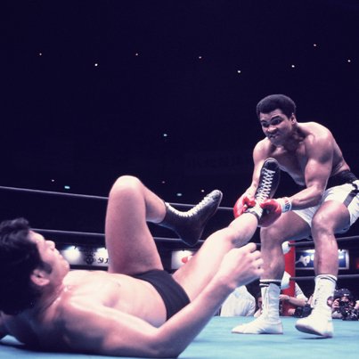 立ち上がって戦うアリと、寝転んで戦う猪木