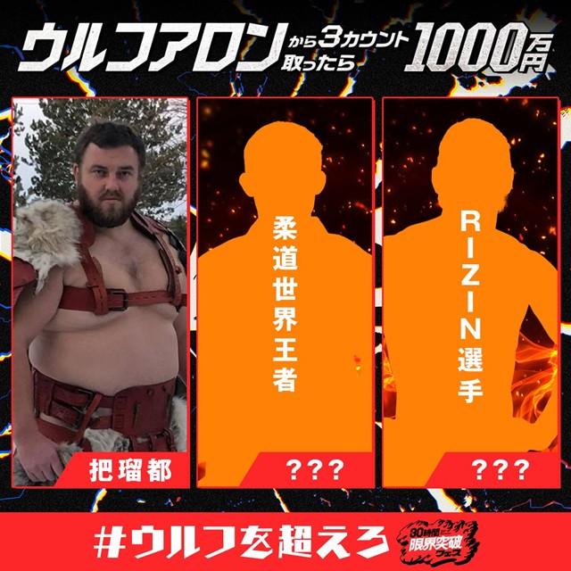 「ウルフアロンから3カウント取ったら1000万円」企画のオーディション動画が公開されたぞ
